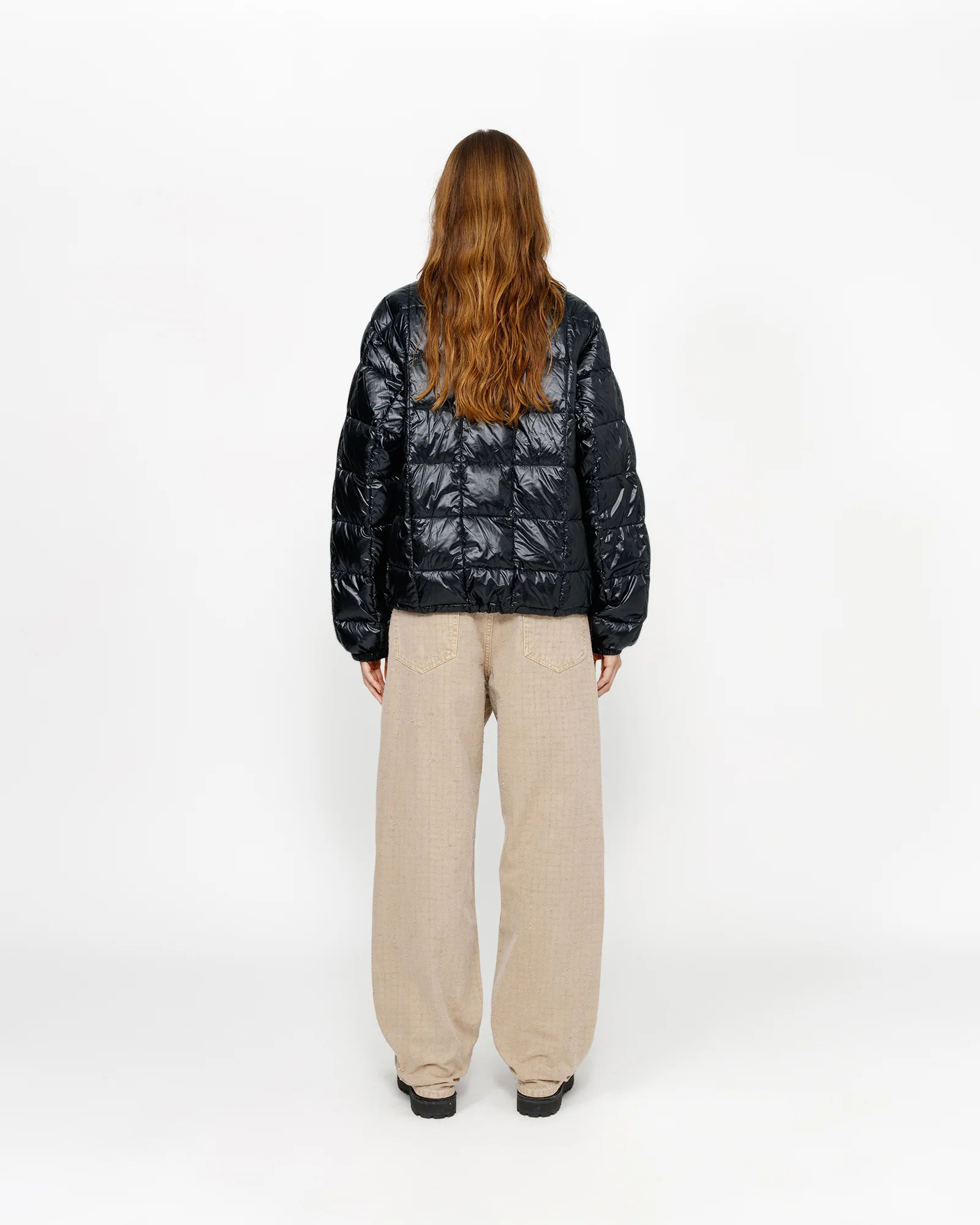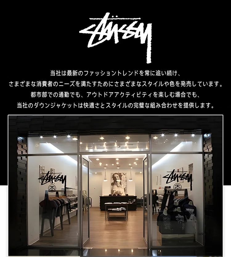 微光沢のある耐水性再生ナイロンを使用したルーズフィットのダウンジャケット。 600フィルの中厚手のキルティングダウンとジッパーフロントクロージャーで作られています。フロントにStüssy Basicsのロゴ刺繍。アウターレイヤーとして着用できるようにデザインされており、サイズ通りですが、ミッドレイヤーとして着用するには、1サイズ小さいものをご注文ください。