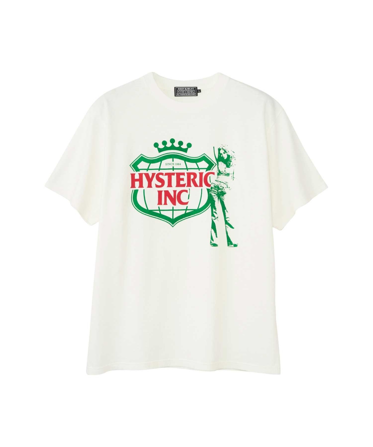 飲料メーカーのようなモチーフに、HYSTERICの味付けを加えて爽快感を出したデザインのTシャツ。