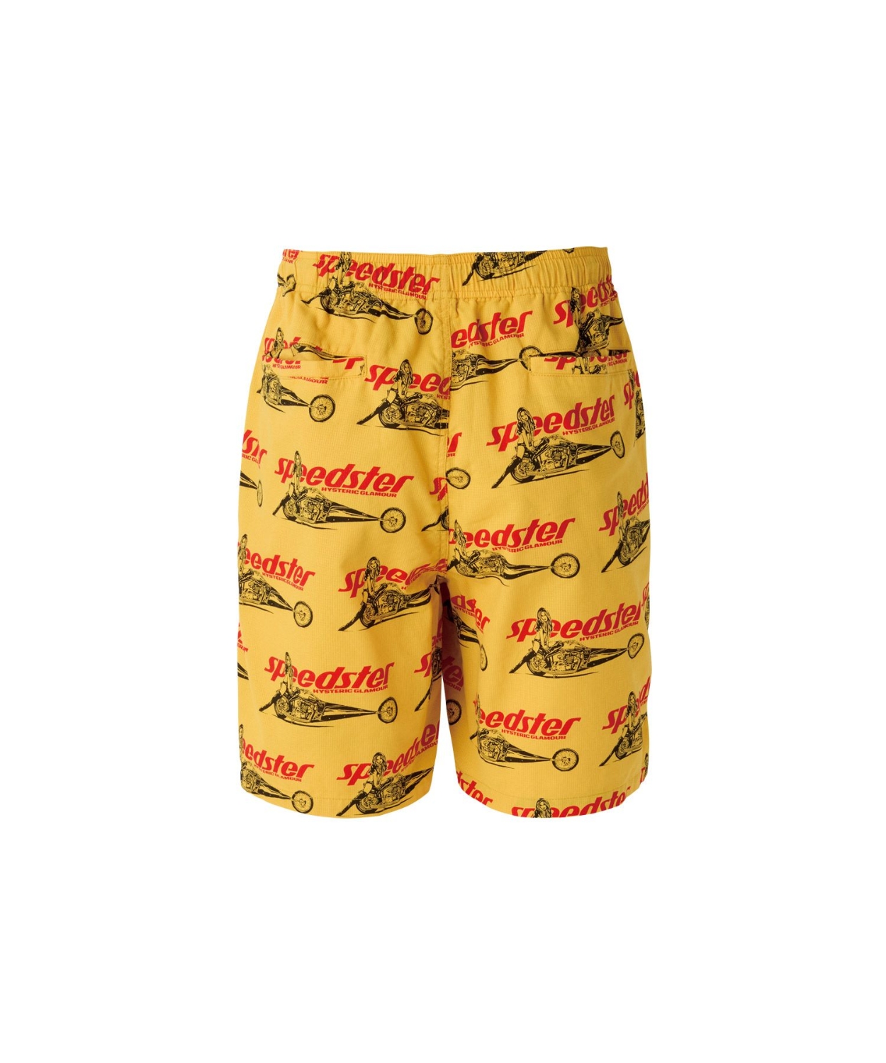 モーターカルチャーが盛んな地で、ドラックレース仕様のバイクにまたがるHYSTERIC WOMANをイメージしたグラフィックを総柄に落とし込んだデザイン。