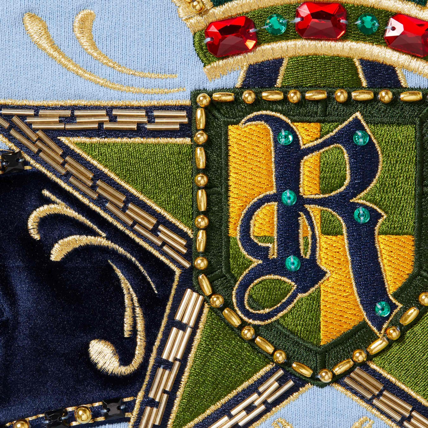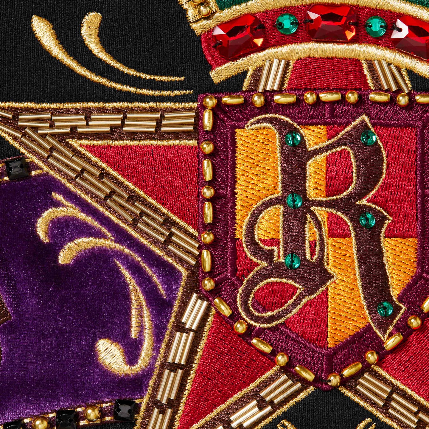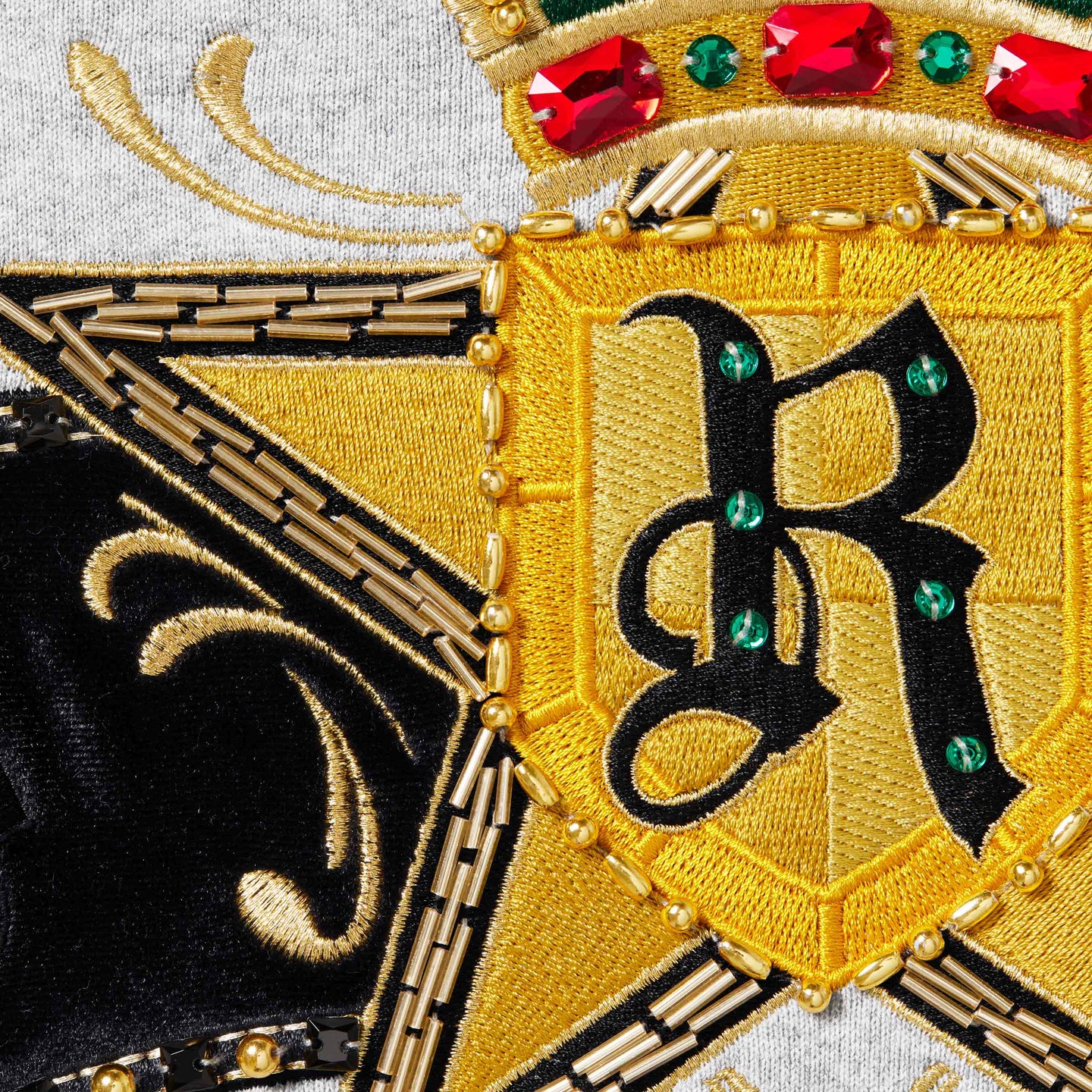 Brushed-back fleece with full zip closure and pouch pocket. Embroidered logo on chest. Beaded velvet appliqué at back with embroidered logo. Original artwork by Shaun Crawford.