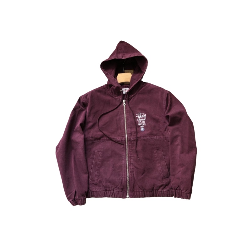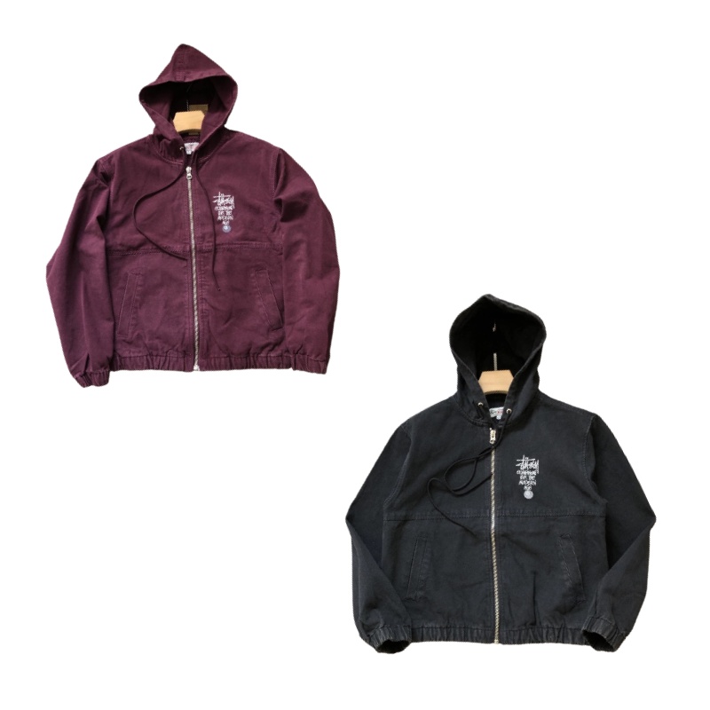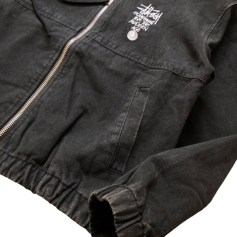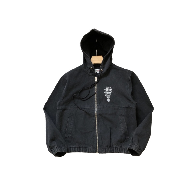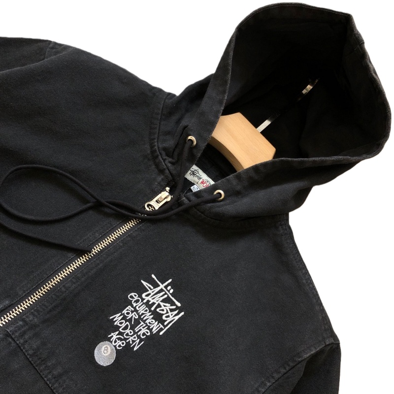 Stussy ステューシー ステューシー ブラック 8文字ロゴ刺繍 メンズ&レディース ウォッシュ加工 ダメージ加工 ジッパー フード付きジャケット