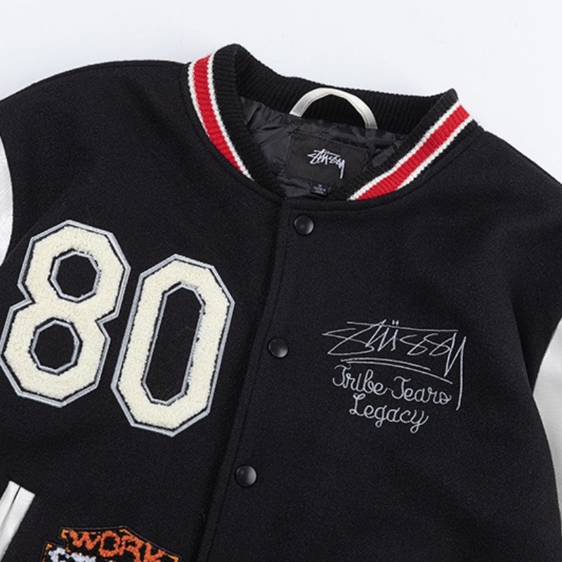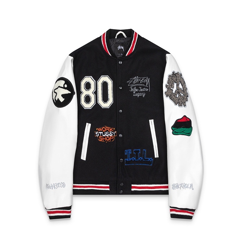 Stussy x OUR LEGACY x Denim Tears 三者コラボ TTL バーシティジャケット パッチワーク刺繍 スクールチーム 野球ユニフォーム ユニセックス