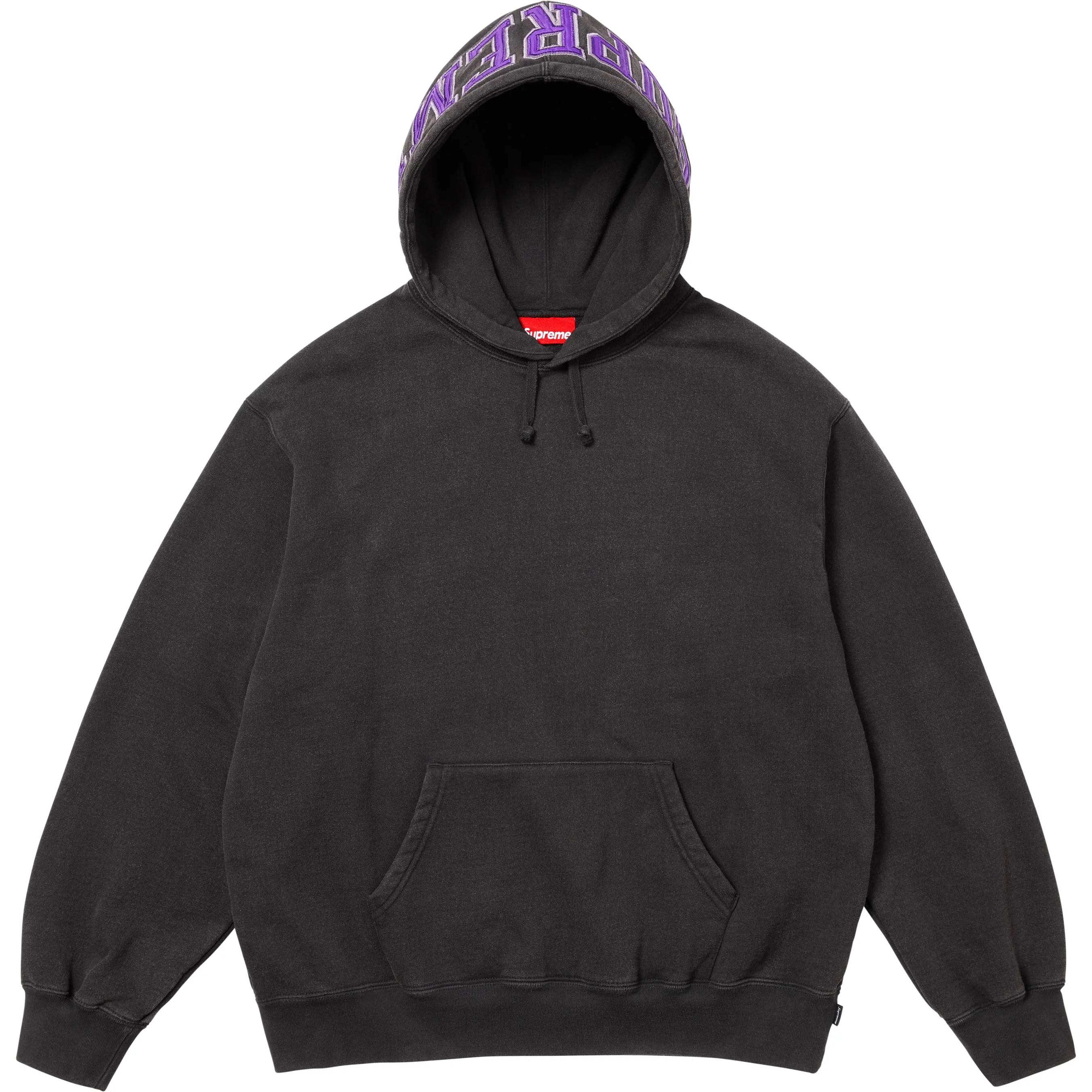 Brushed-back fleece with pouch pocket. Nylon logo appliqué at hood and graphic appliqué at back.